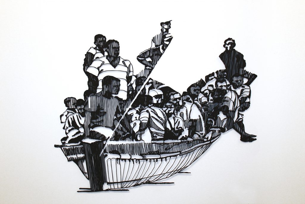 Based on forced displacement and immigration and using tridimensional cutout drawings and different sources of light and shadows, this body of work is an exploration into the practice of drawing, addressing this practice in ways that expand its traditional limits.