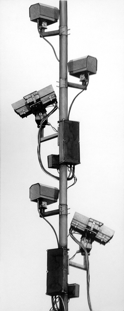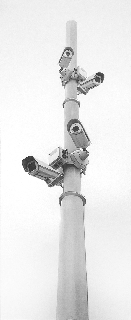 In creating these drawings, I am also exploring the larger themes of surveillance, privacy, and control. By drawing attention to these cameras, I hope to spark a conversation about the ways in which our lives are monitored and controlled, both in public spaces and in the digital realm.Ultimately, this work is a reflection of the world we live in. It is a reminder that even as we go about our daily lives, we are being watched and monitored. Through this series, I hope to instigate a greater awareness of these issues, and to encourage viewers to think critically about the impact of surveillance on our society.
